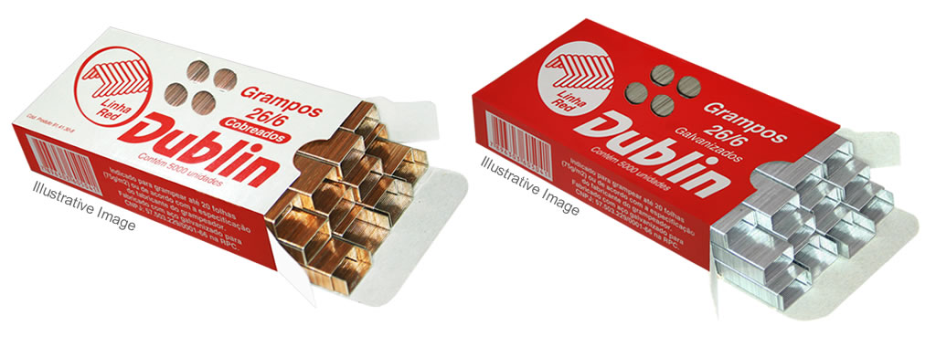 The 26/6 Dublin staples are manufactured with oxidation resistant coated steel wire. Indicated for stapling up to 20 sheets (75 g/m² paper), or according to the manufacturer's specification of each stapler, always checking the condition of the stapler. The number 26 refers to the type of the clamp and the 6 refers to the size of the leg in millimeters. All staples have oxidation (anti-rust) treatment and sharp tips.