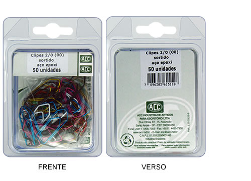 Clipes 2/0 cores separadas blister c/ 50 unidades
