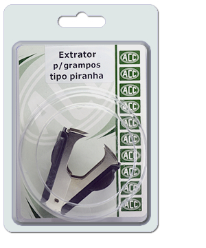 O Extrator de grampo tipo piranha, é fabricado em metal e revestido com plástico de ótima qualidade, proporcionando resistência e segurança no seu manuseio. Próprio para extrair grampos 24/6, 26/6 e 26/8.